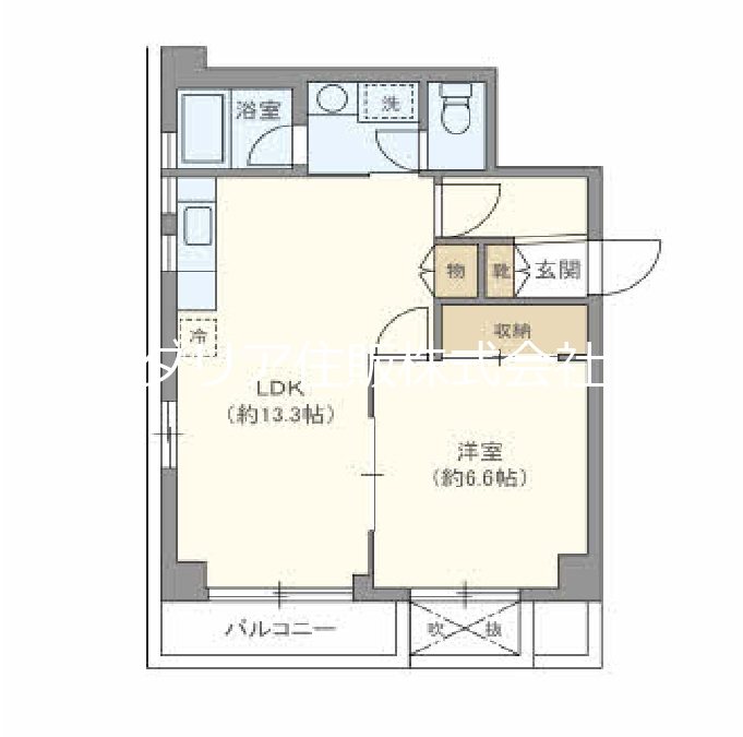 洋室(6.6畳) LDK(13.3畳)
